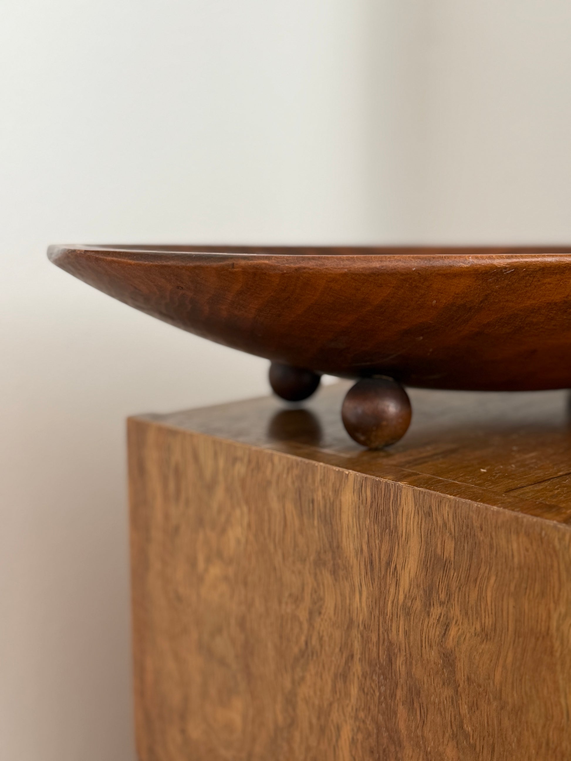 Mid-Century Modern Ball-Footed Wood Dough Bowl