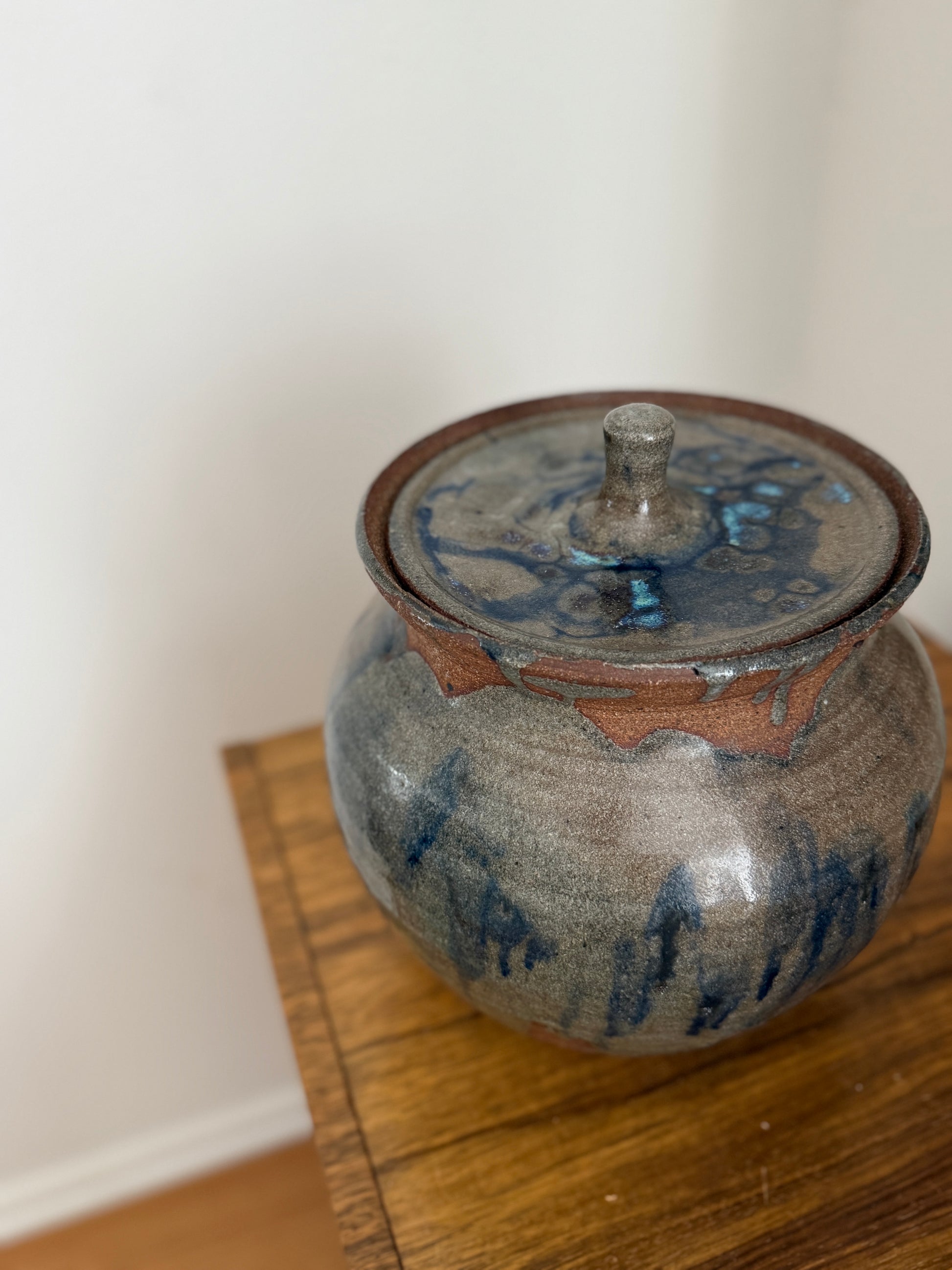 An incredible, artisanal, ceramic, large, lidded jar in near-perfect condition.