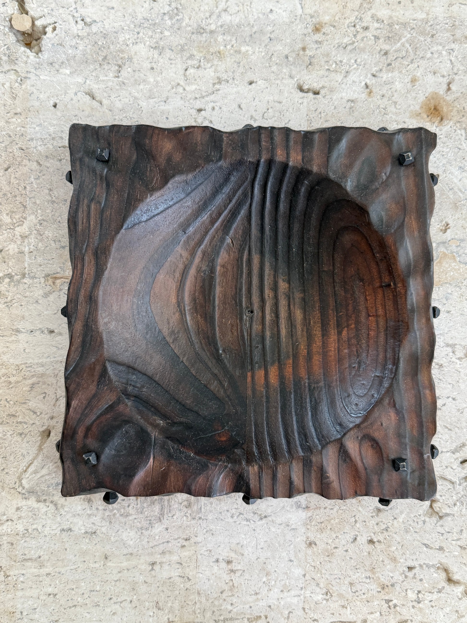 Hand-carved by the mountainous artisans of Spain, this tray/bowl features wrought iron accents.